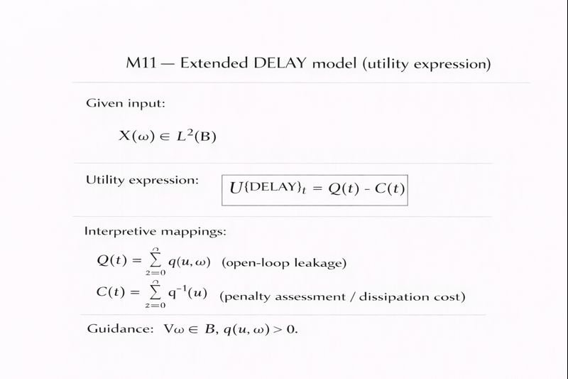 DELAY (containment) regime: activation of a composite operator that introduces delay, smoothing, projection, and nonlinear reframe.